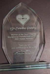 Awarded by DR Desirre Richardson Founder of Women of Hearts Awards for contribution to the world.